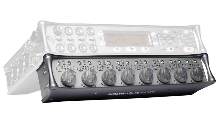 External controller for 788T and 788T-SSD recorders. Designed for over the shoulder or cart applications. Provides control of pre- or post-fader gain, input routing, high-pass filter, input limiters, polarity reversal, input solo, and slate mic. Connects and powered from 788T from USB.